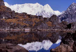 Reflections of Kabru range in the Chachung lake.
