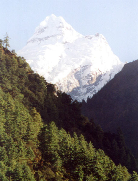 The impressive west face of Ganesh I (7'406 meters) from the trail to base camp.