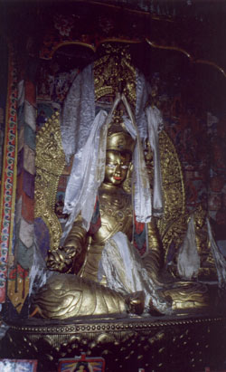 Statue of Guru Rinpoche in the main hall of Sama monastery.